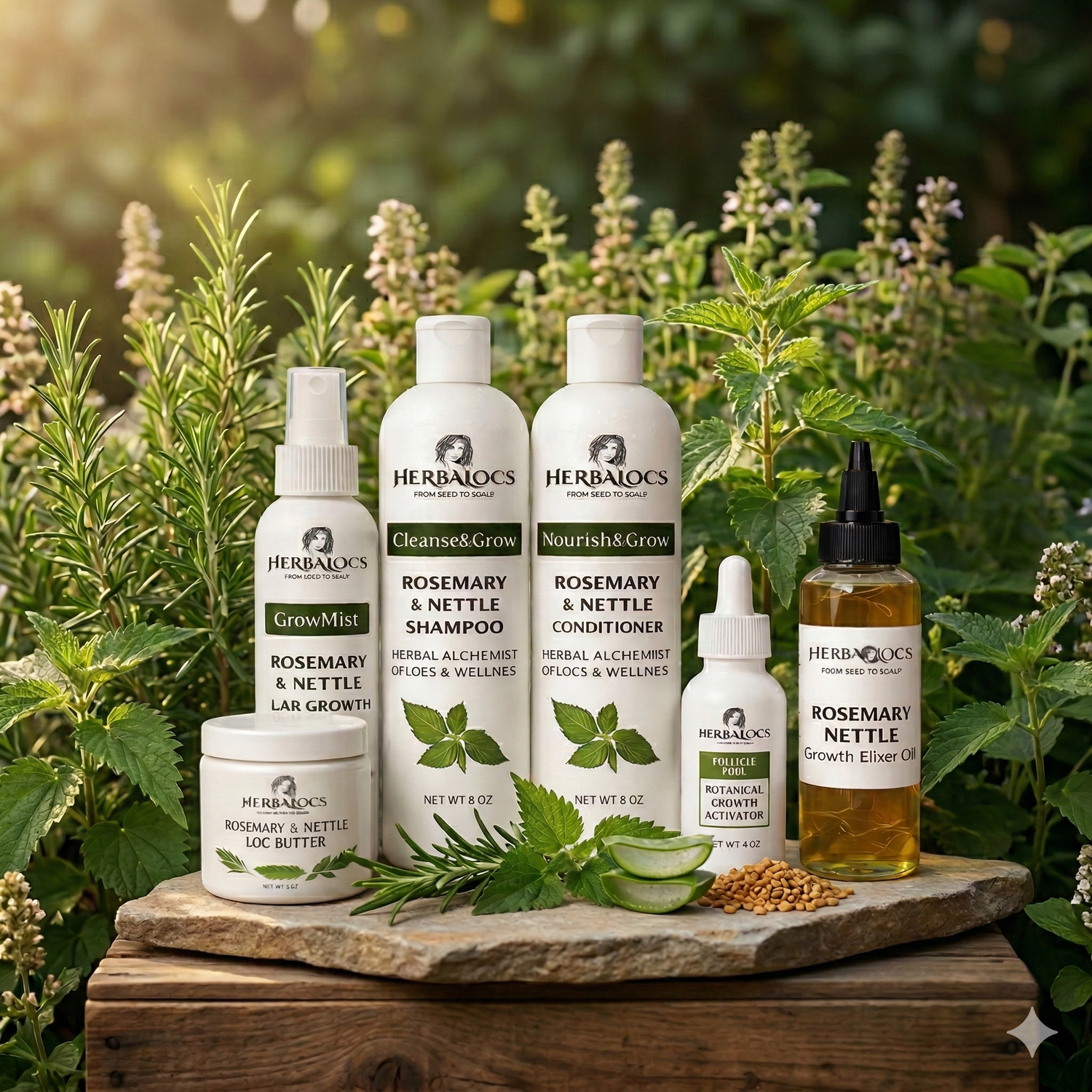 Healthy locs begin at the root β and our Rosemary & Nettle Extreme Hair Growth System transforms your wash day into a powerful growth ritual. Infused with farm-grown botanicals known to stimulate, strengthen, and nourish, this complete system works in harmony to deeply cleanse, replenish moisture, seal hydration, and support stronger, fuller-looking locs over time. From scalp to strand, each step is intentionally crafted to promote balance, vitality, and visible growth. This isnβt just hair care β itβs a commitment to honoring your loc journey with consistent, plant-powered care.
